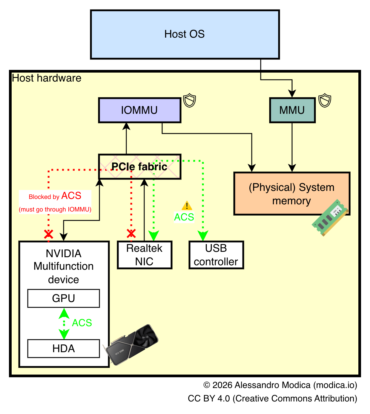 For example, during the writing of this article, a GPU variant of a well-known DRAM vulnerability called Rowhammer was discovered, affecting users of some 50-series NVIDIA RTX GPUs, and eventually being used to target host memory. One mitigation that has been mentioned is enabling IOMMU, but if the ACS bypass patch is enabled, the memory space of other devices that in turn can interact with the host could be compromised, resulting in potential unwanted access albeit through a very complex and not yet proven exploit chain.